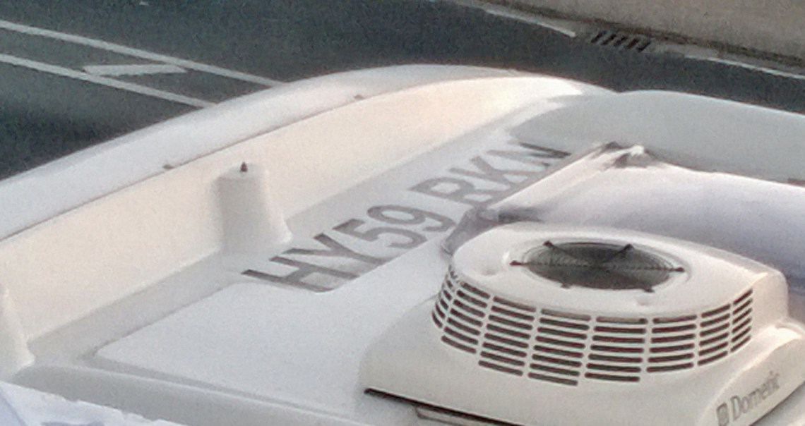 Large numbers and letters are available on eBay and so long as you have space on the roof then put your reg no on the roof.