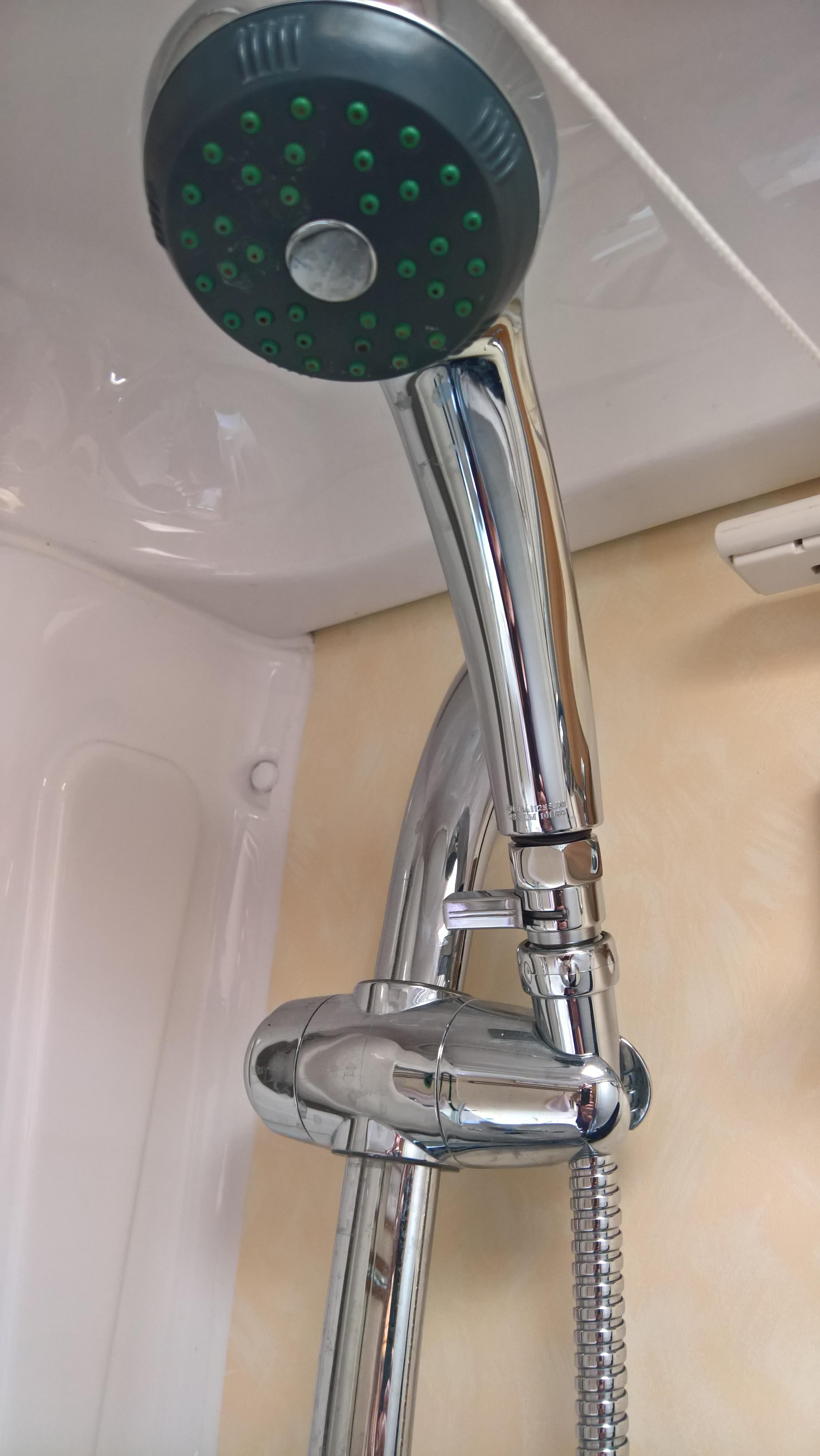 To pause the flow and save water without losing the heat setting. A small isolater tap that has an easy to use lever to pause the flow of water that can be easily found by feel when you don’t want soap getting in your eyes.