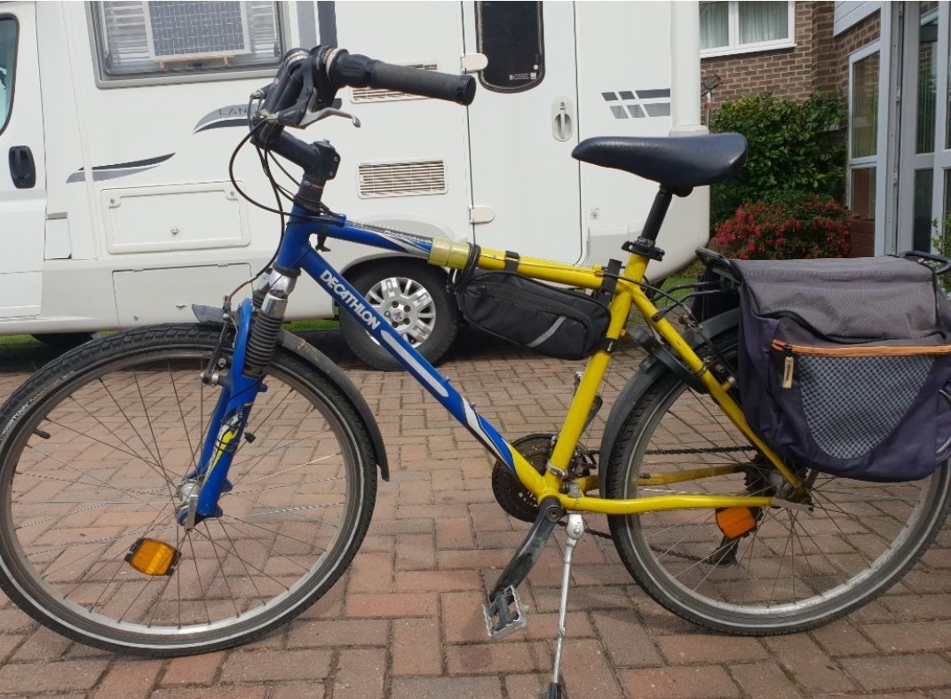 Our bikes have been stolen from the back of our motorhome 4am 25th June 2021. My BLUE AND YELLOW DECATHLON bike that has accompanied us on all our european travels for 15 years and my wife’s RED MIRRORSTONE ELECTRIC BIKE.